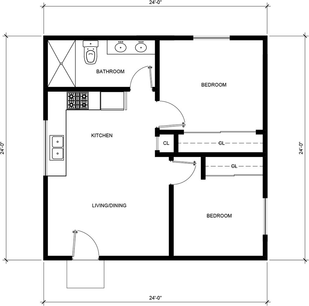 2 BEDROOM / 1 BATHROOM (576 S.F)