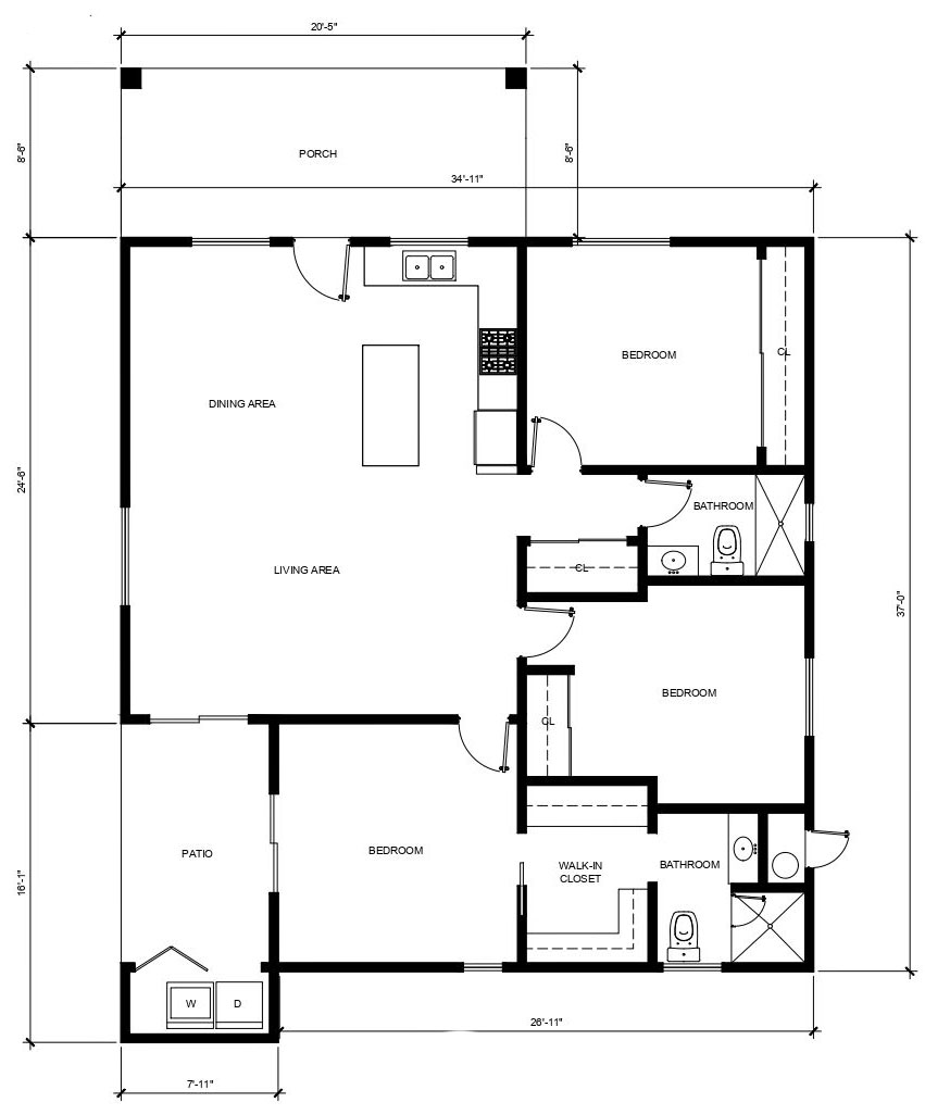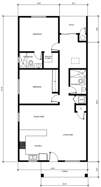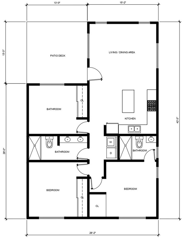 2 BEDROOM / 2 BATHROOM (800 S.F)