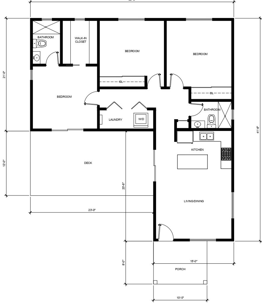 3 BEDROOM / 2 BATHROOM (1000 S.F)