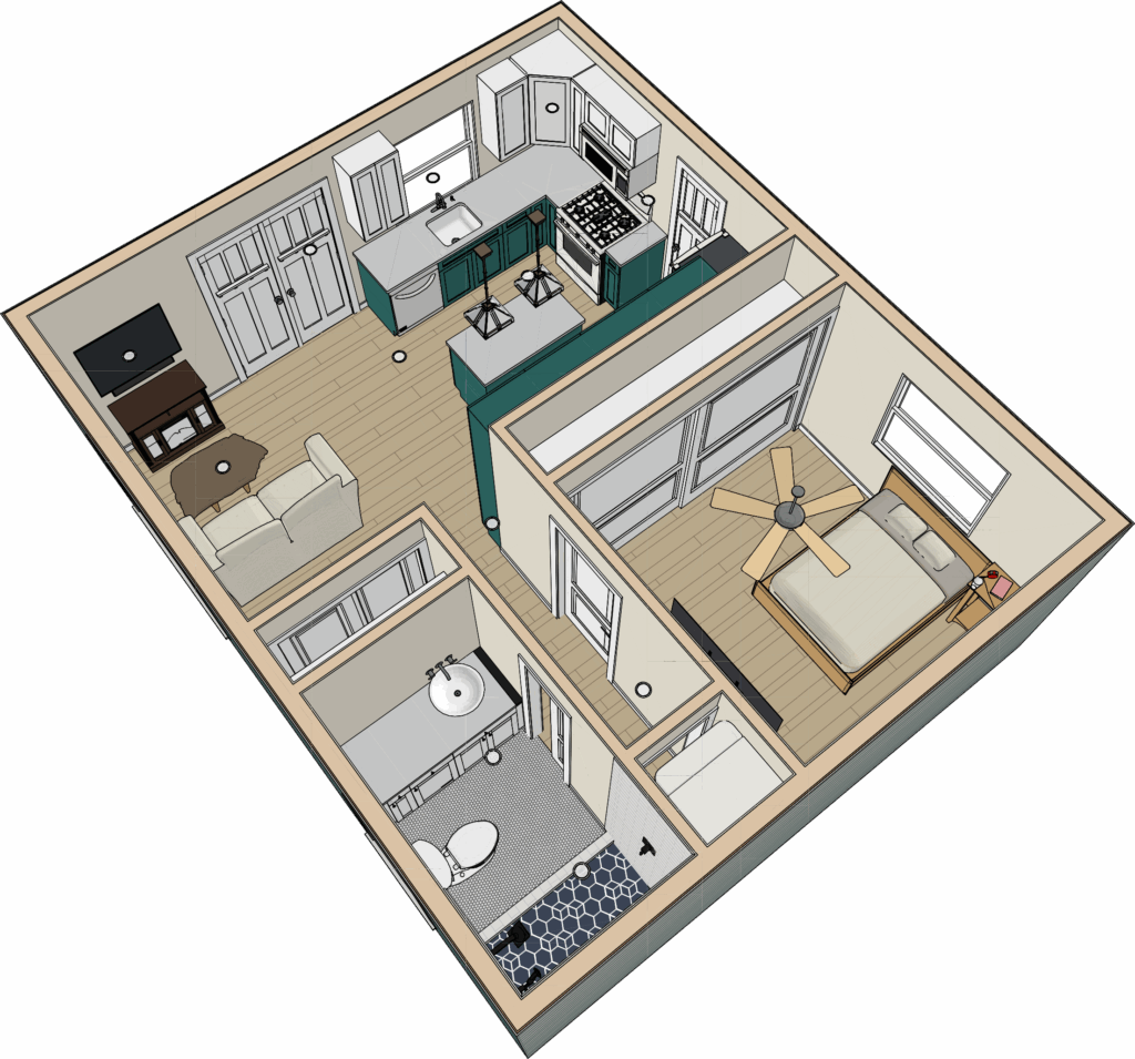 2 BEDROOM / 2 BATHROOM (748 S.F)