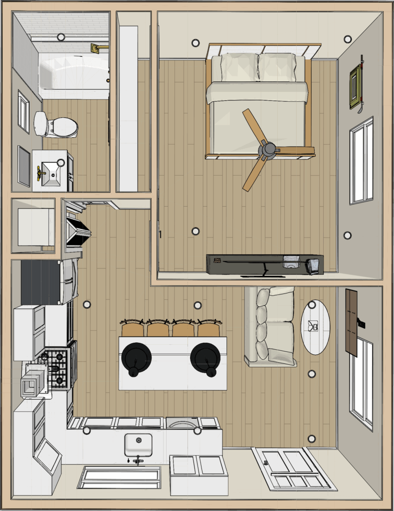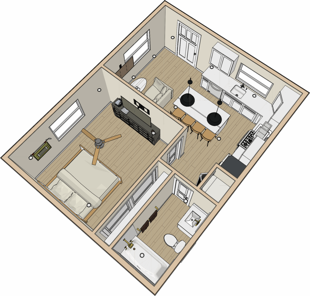 1 BEDROOM / 1 BATHROOM (520 S.F)