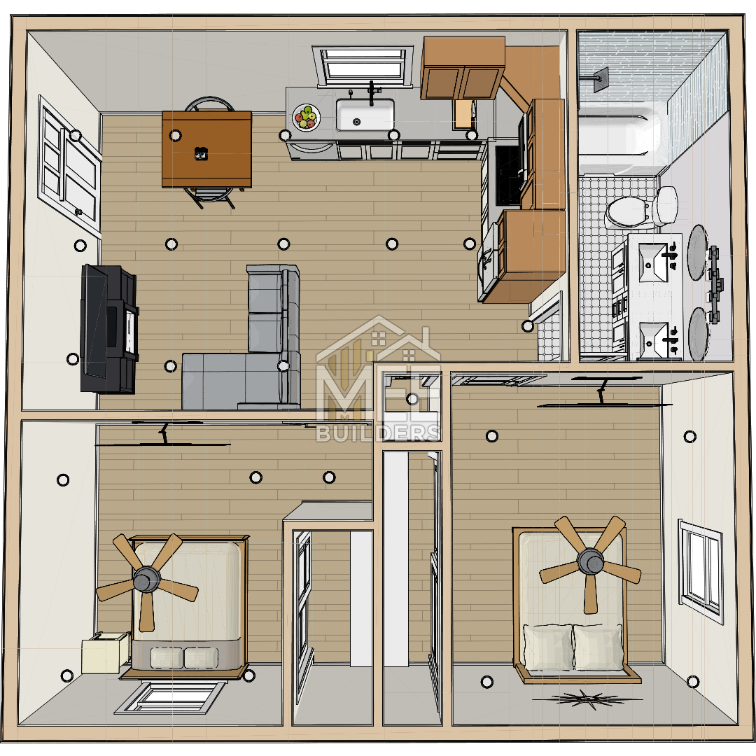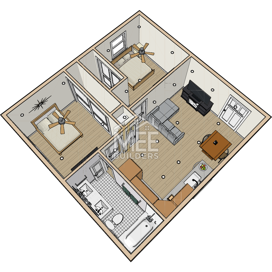 2 BEDROOM / 1 BATHROOM (576 S.F)