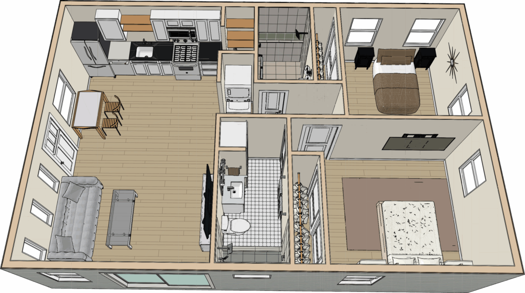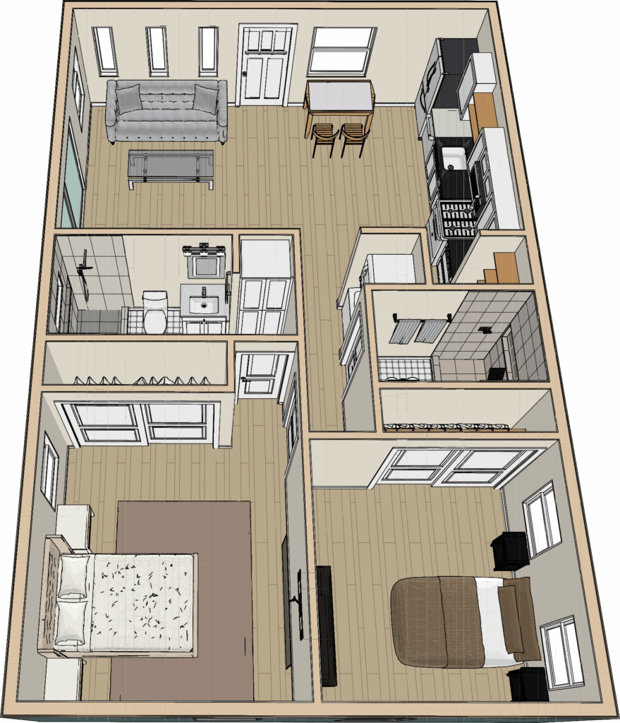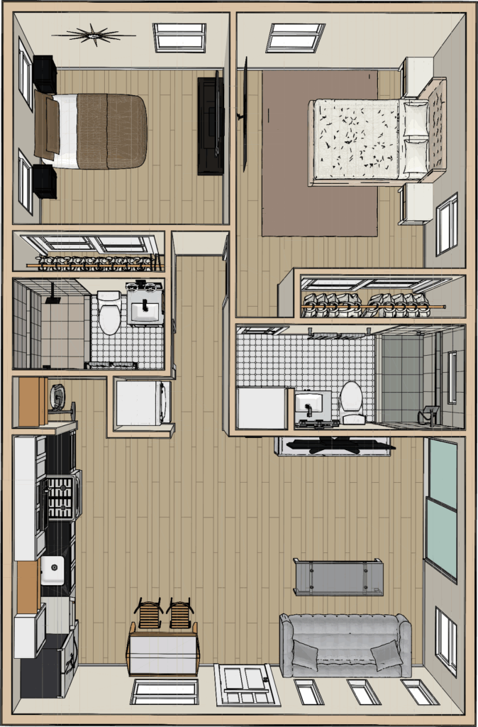 2 BEDROOM / 2 BATHROOM (748 S.F)