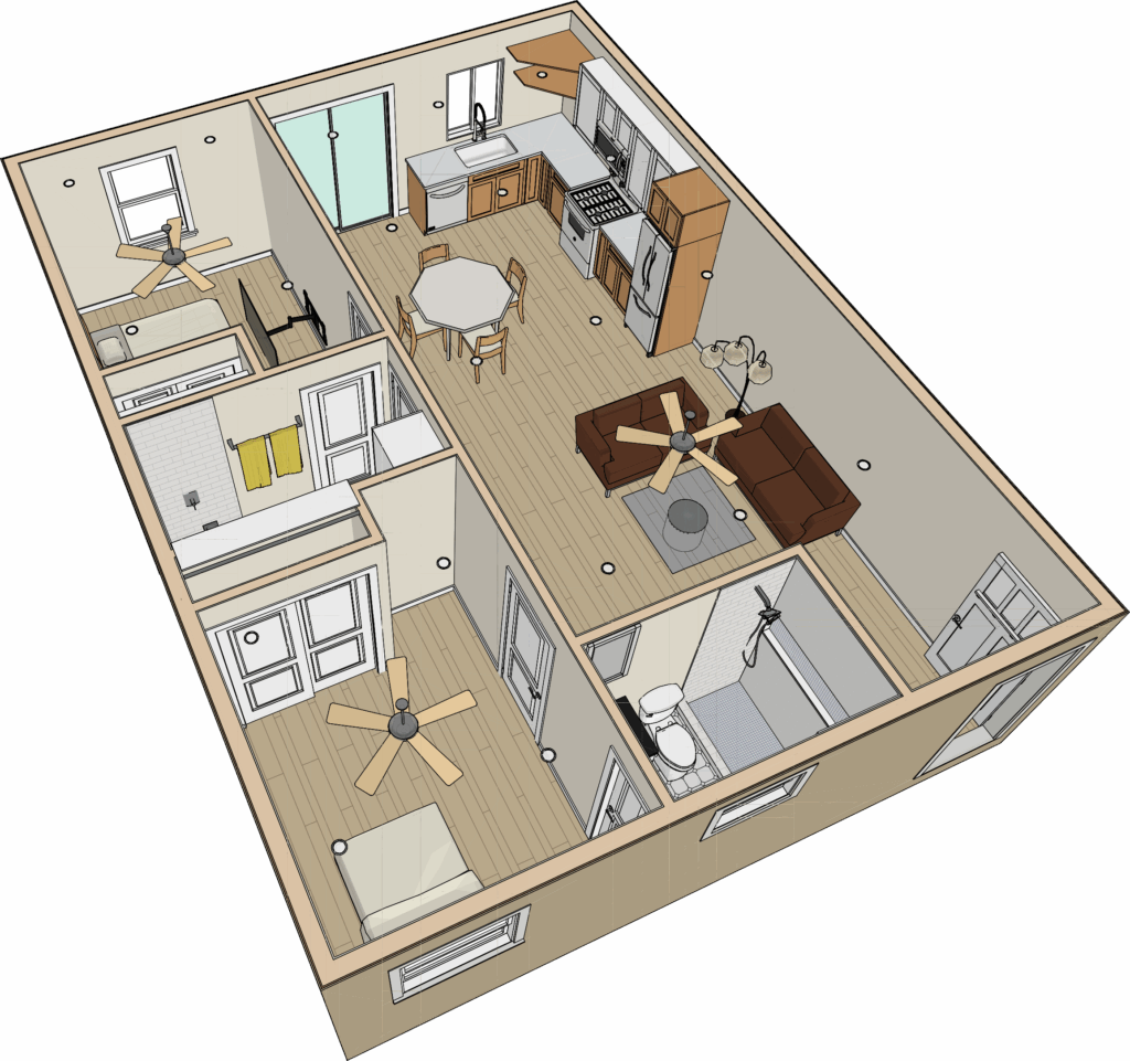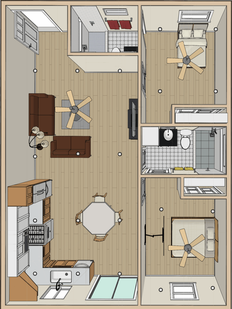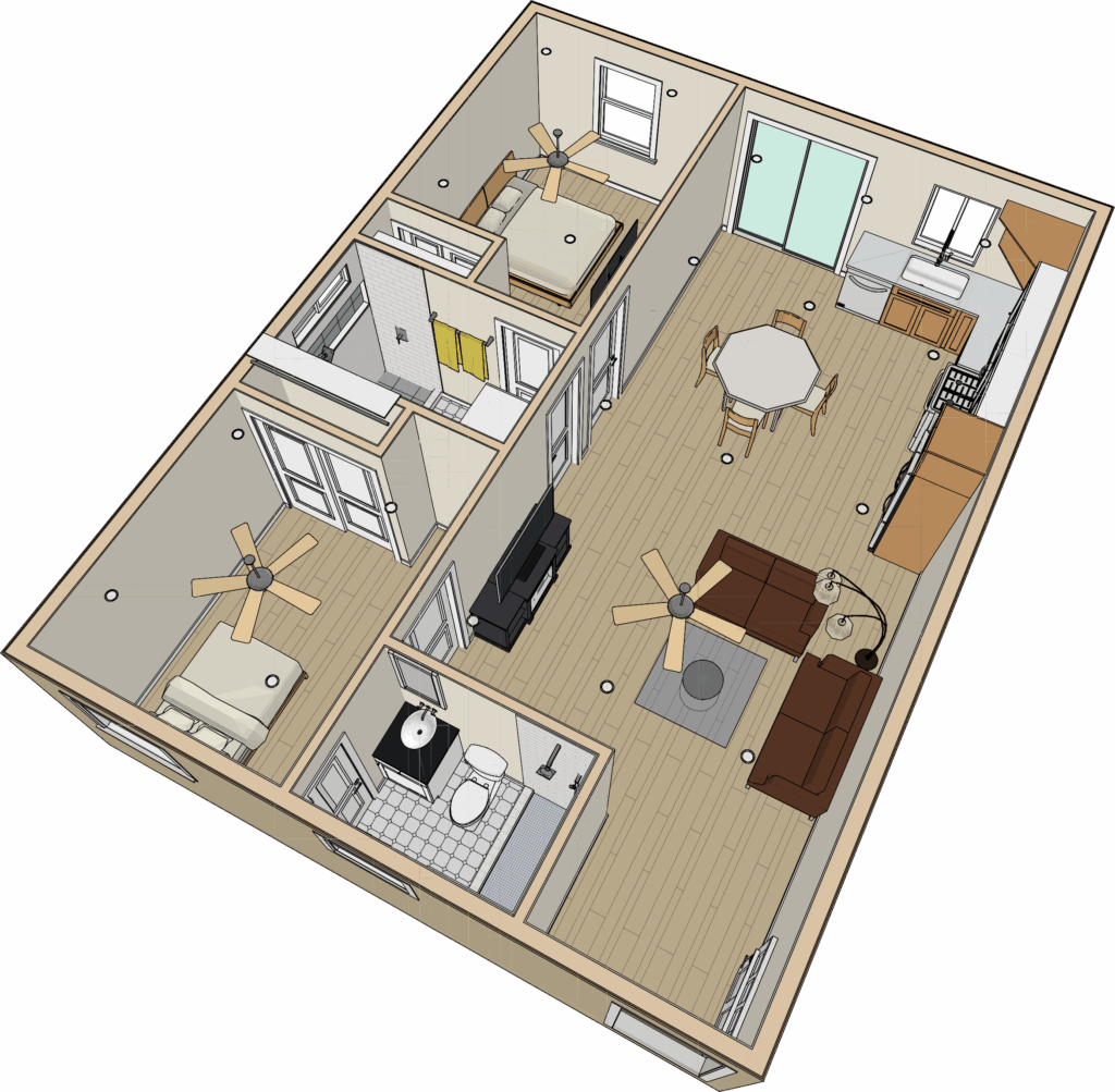 2 BEDROOM / 2 BATHROOM (748 S.F)