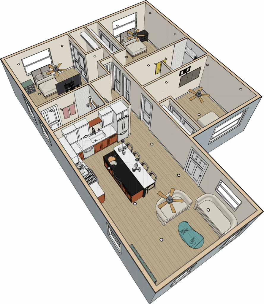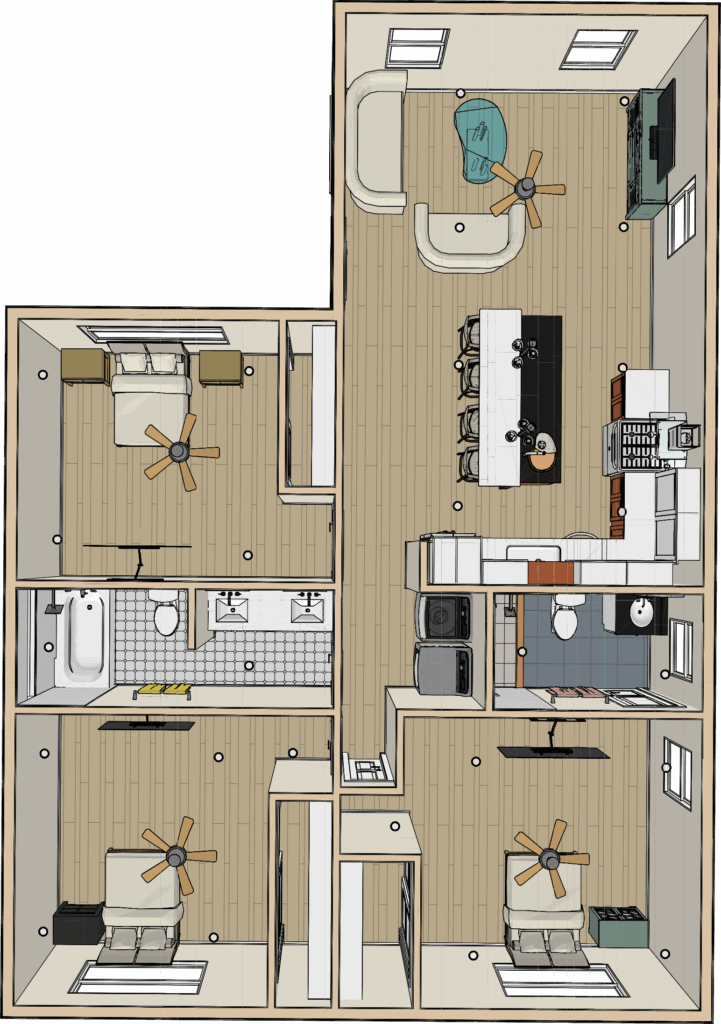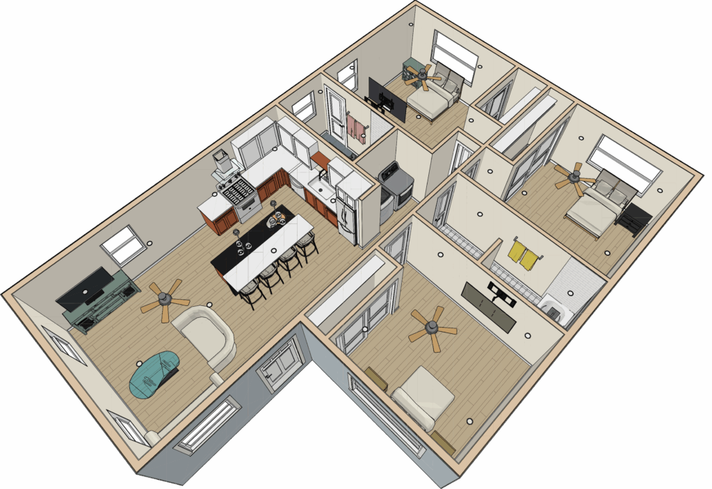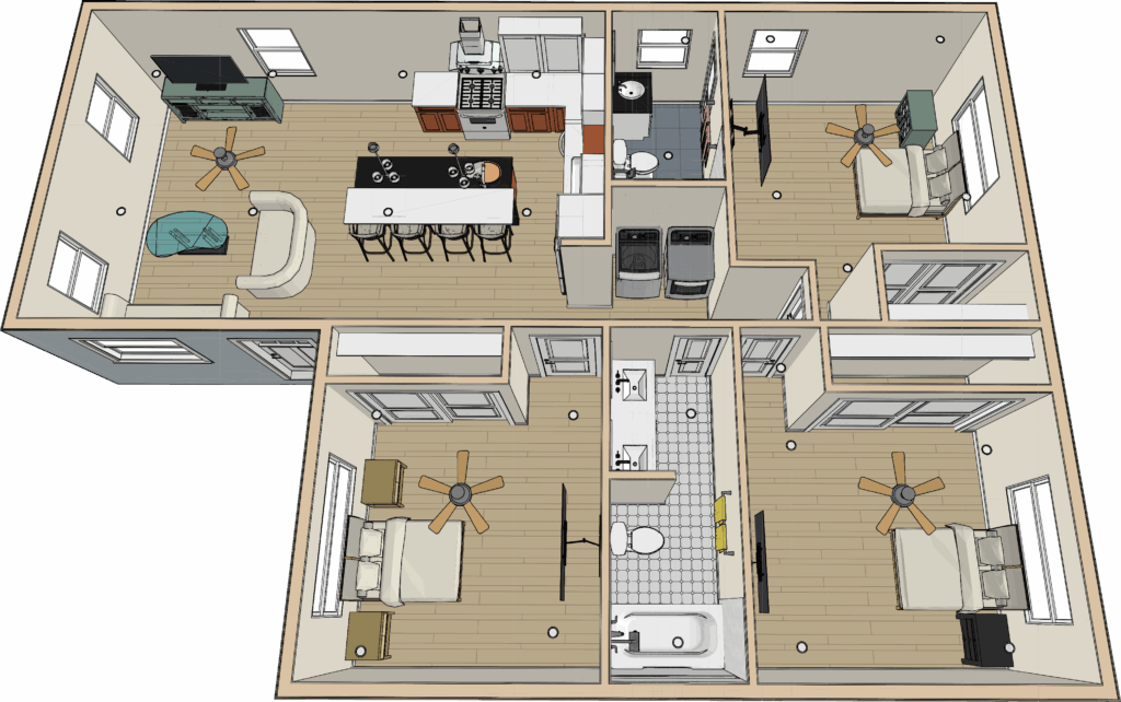 3 BEDROOM / 2 BATHROOM (1190 S.F)