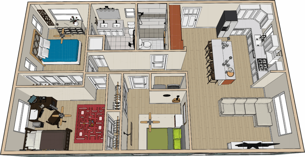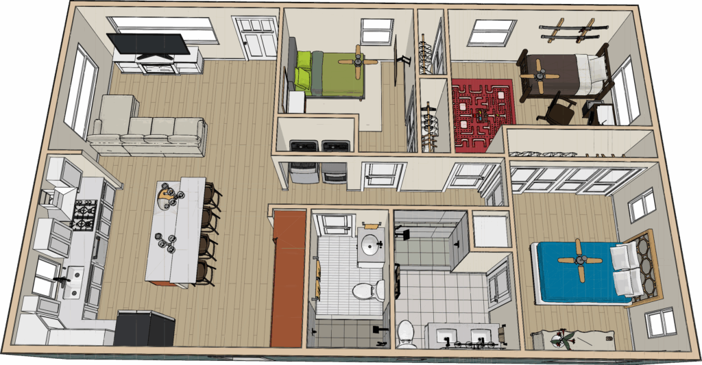 2 BEDROOM / 2 BATHROOM (748 S.F)
