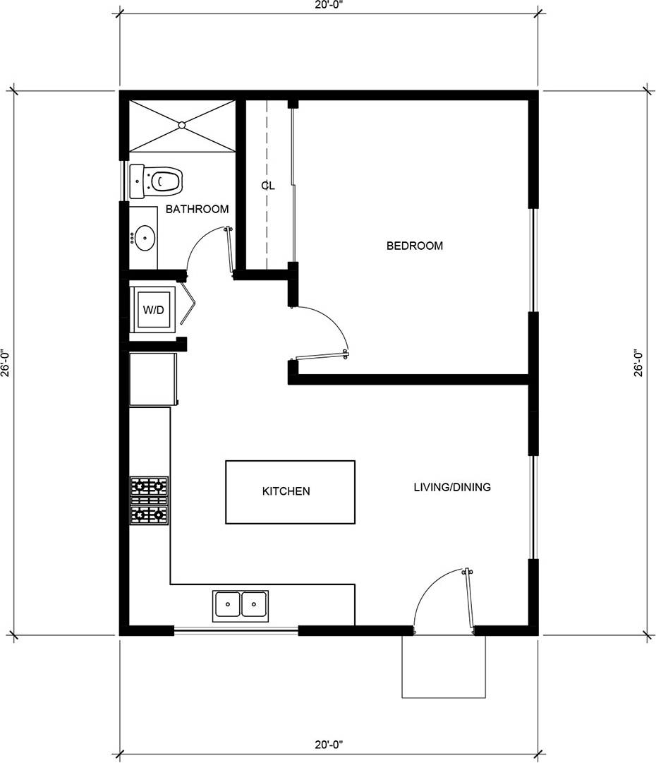 1 BEDROOM / 1 BATHROOM (520 S.F)