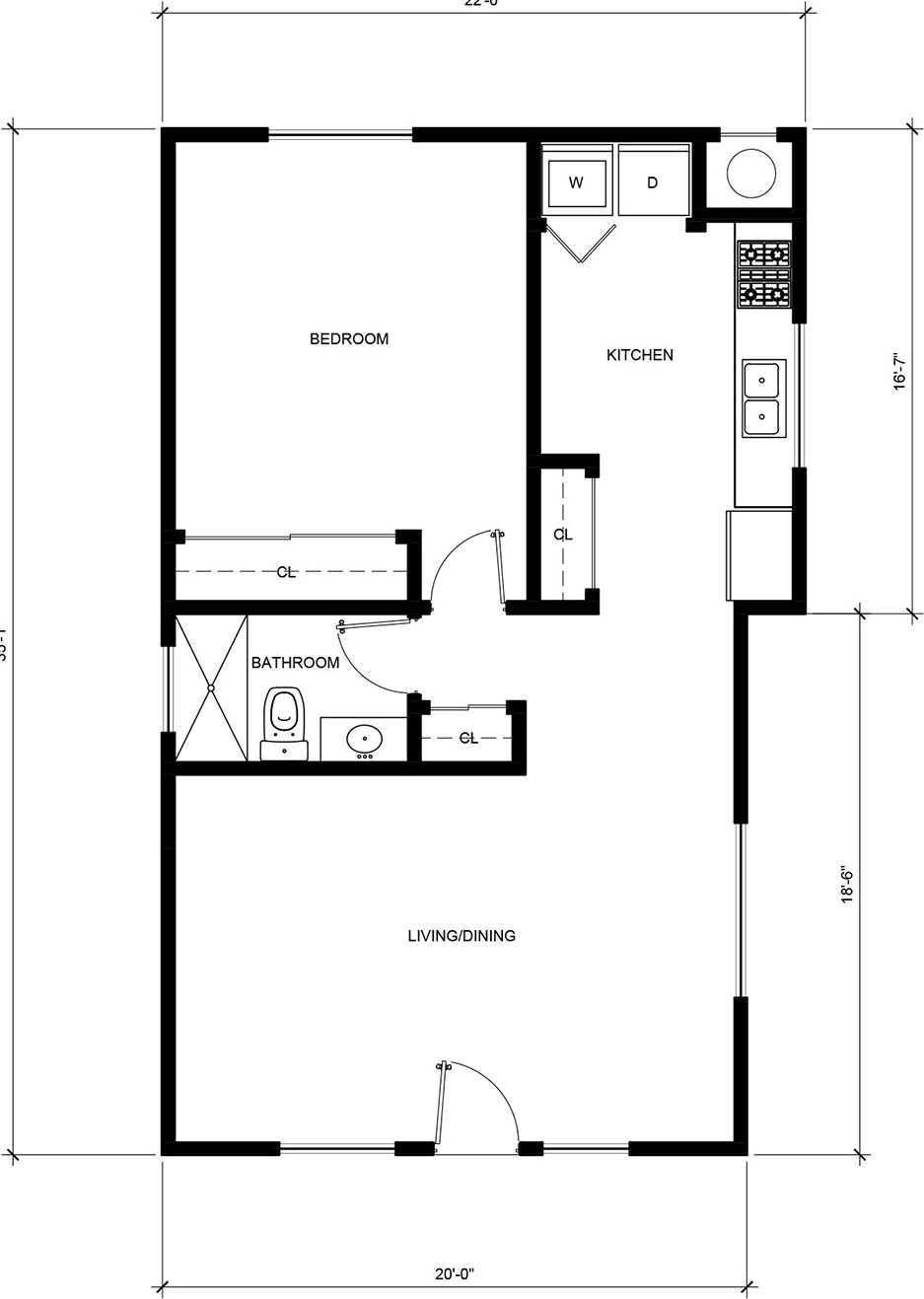 1 BEDROOM / 1 BATHROOM (520 S.F)