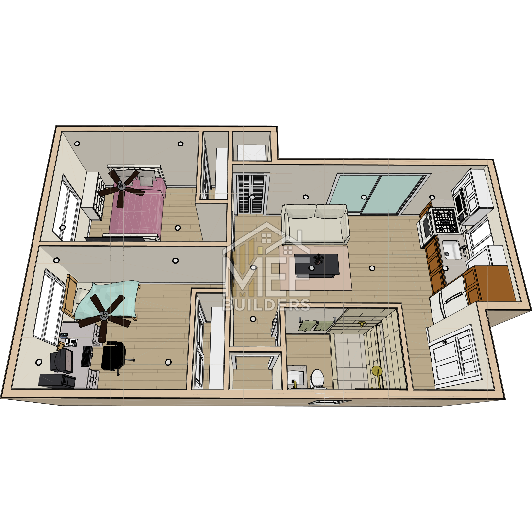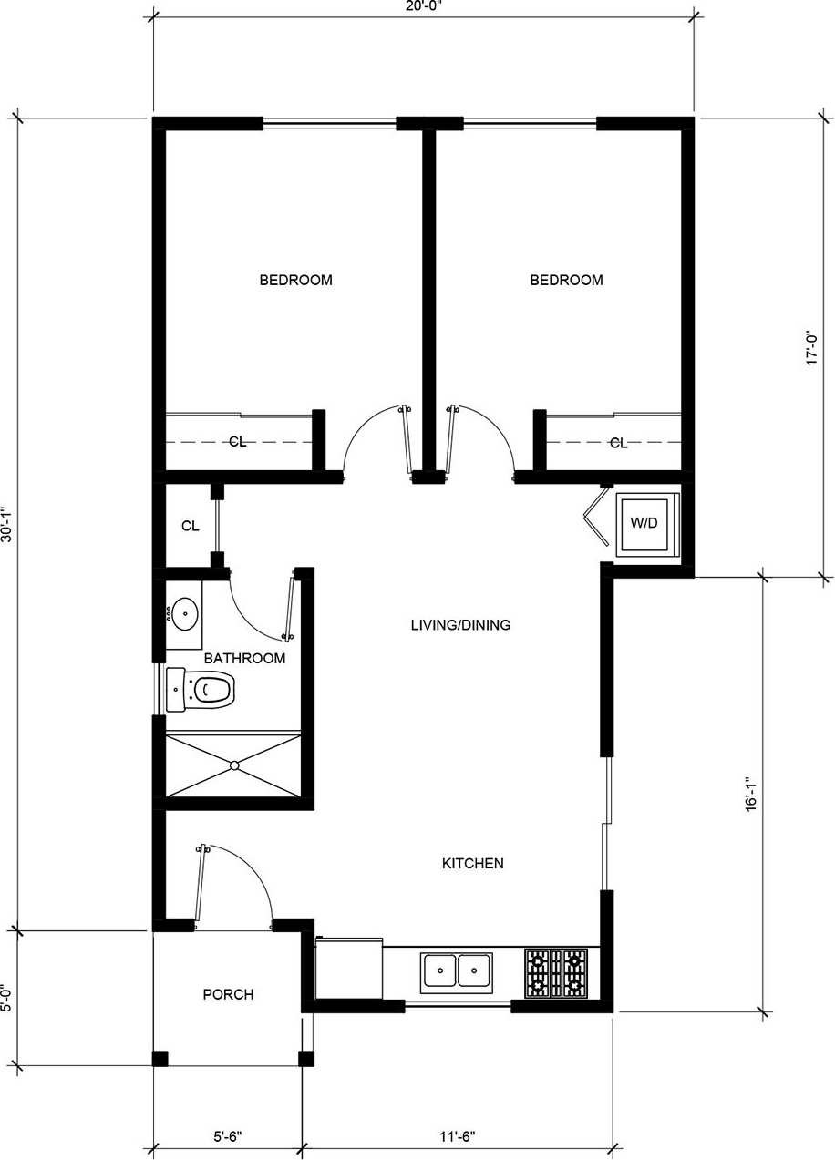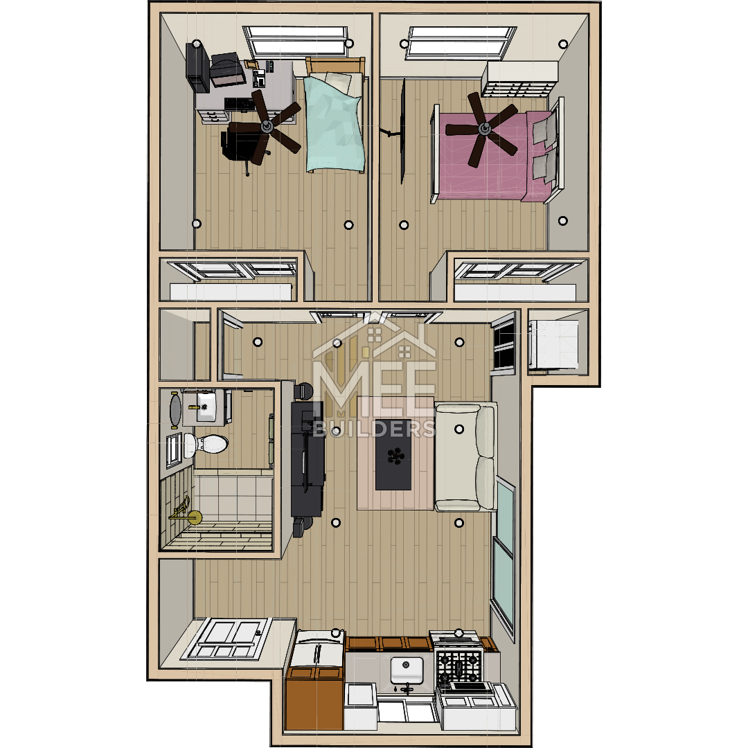 2 BEDROOM / 1 BATHROOM (596 S.F)