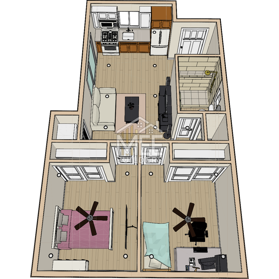 / 2 BEDROOM / 1 BATHROOM (596 S.F)