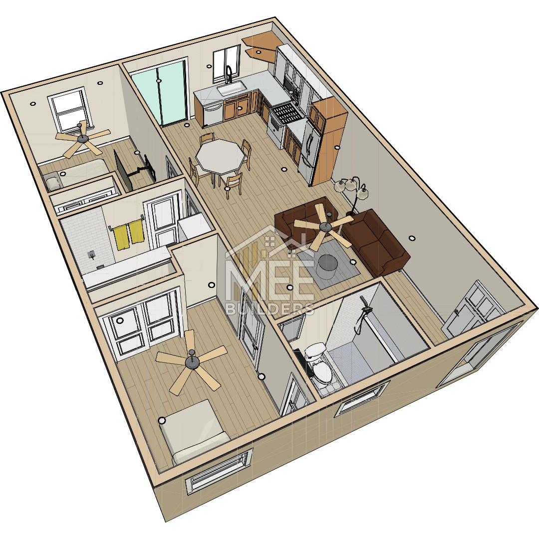 3 BEDROOM / 2-1 BATHROOM (1198 S.F)