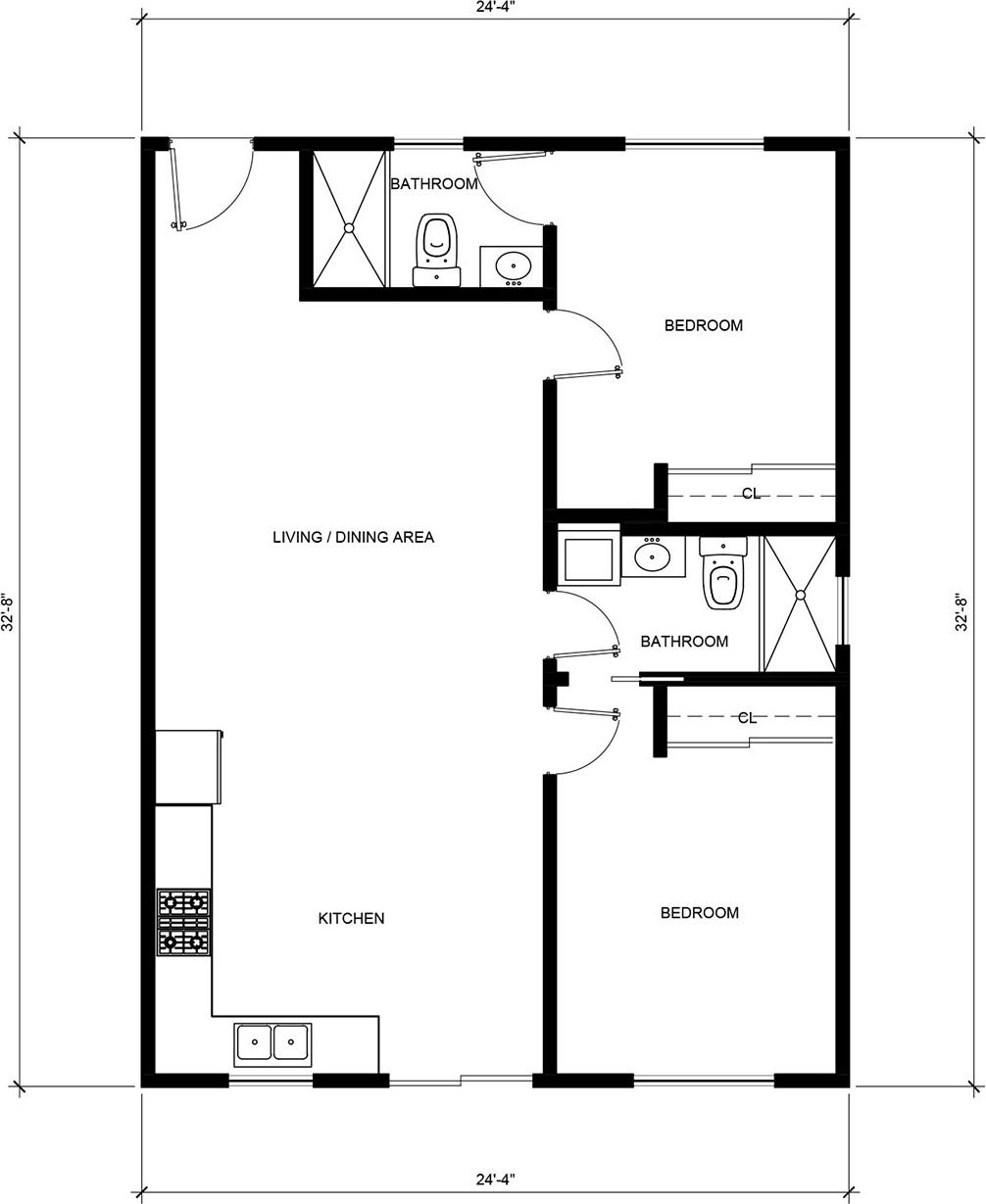 2 BEDROOM / 2 BATHROOM (794 S.F)