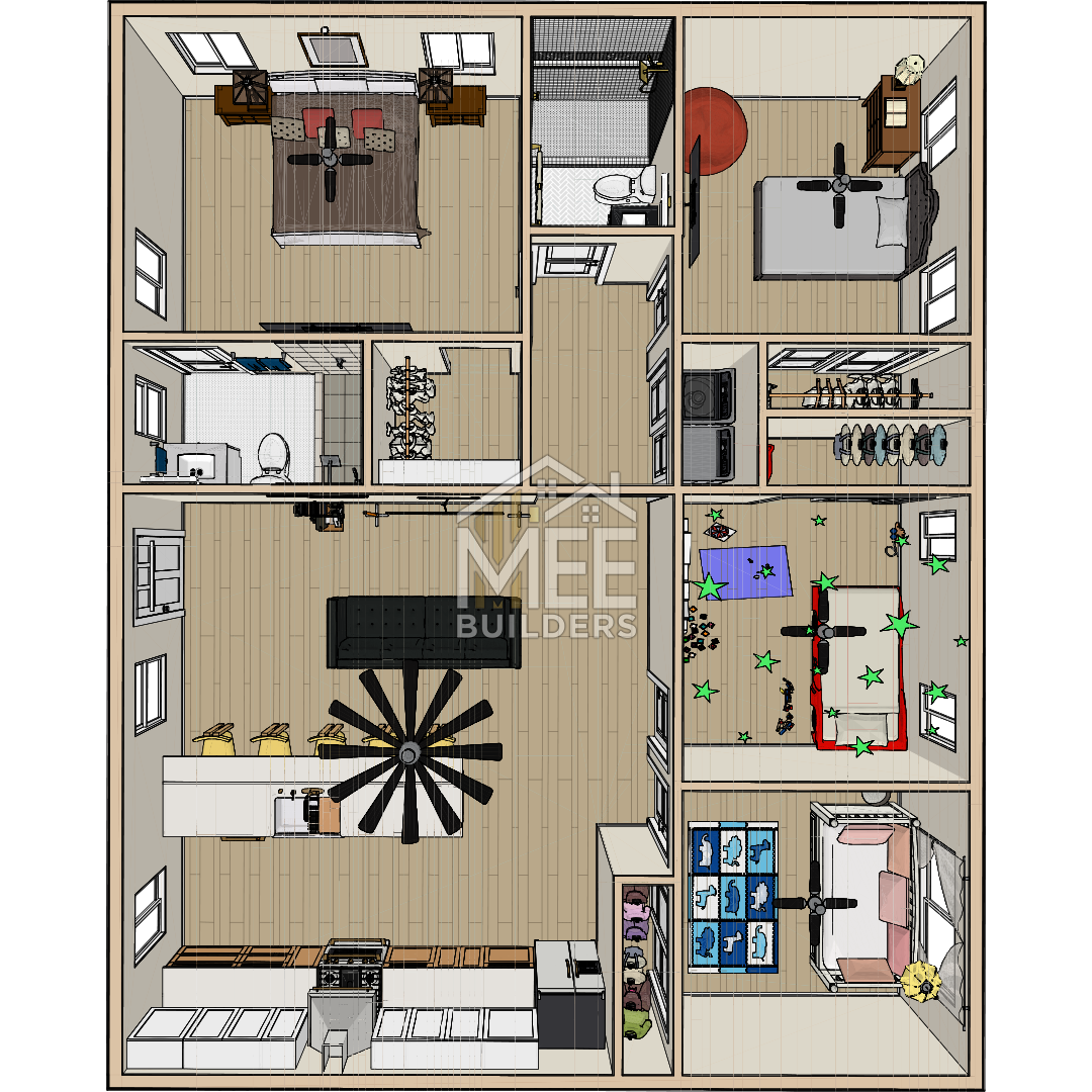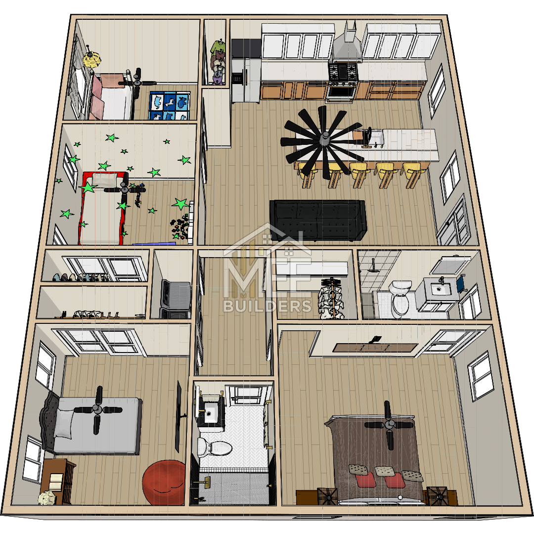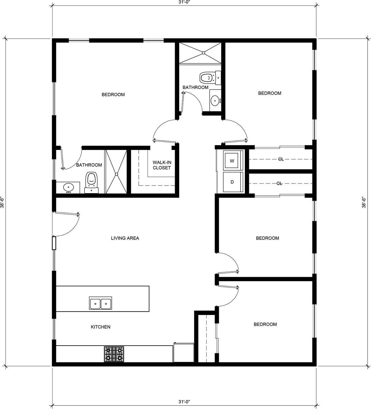 3 BEDROOM / 2-1 BATHROOM (1198 S.F)