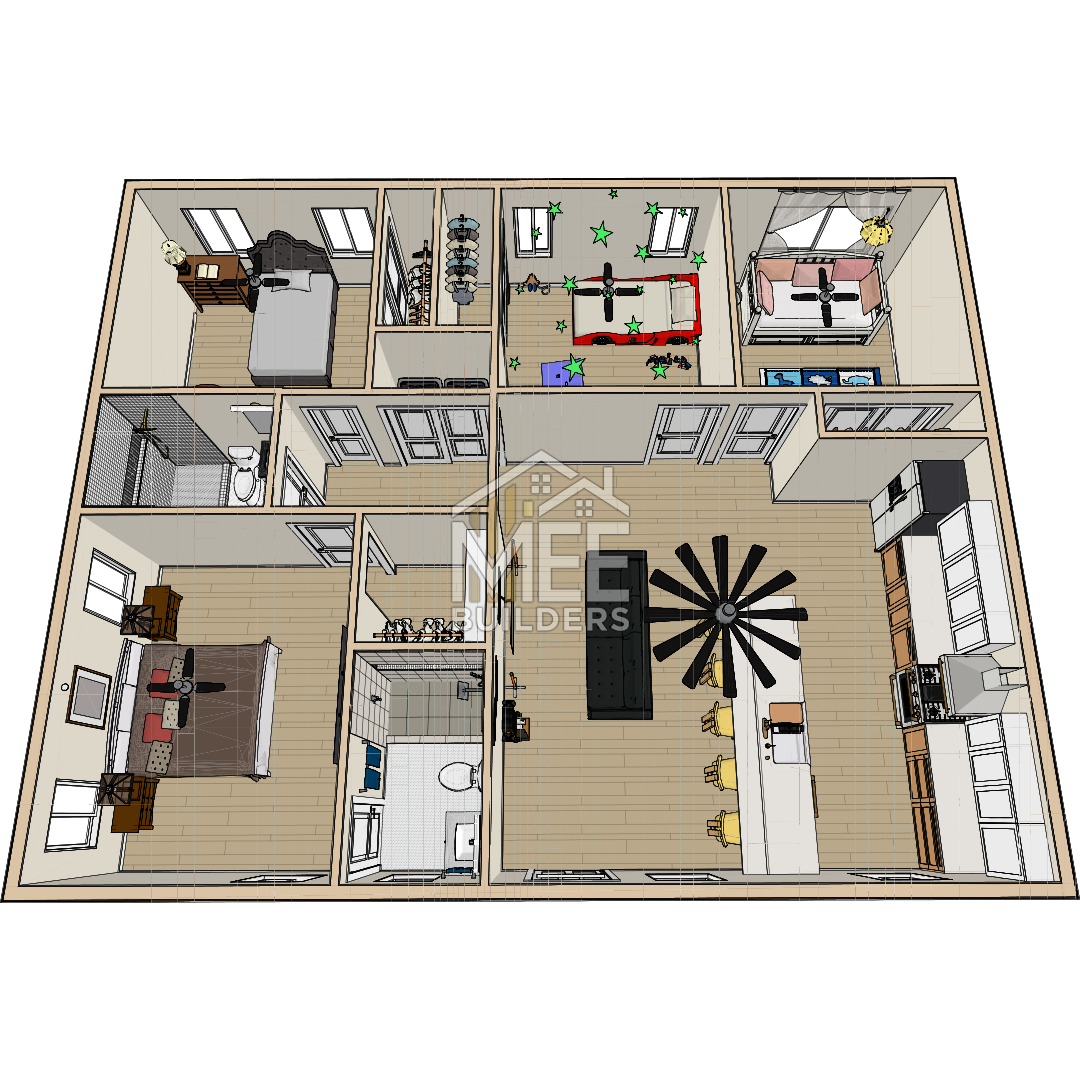 4 BEDROOM / 2 BATHROOM (1193 S.F)